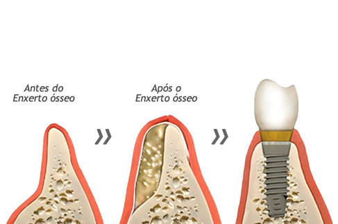 Durante a avaliação clínica, o Cirurgião Dentista analisará exames radiográficos e tomográficos, para assim determinar se há osso suficiente para suportar o implante ou se há a necessidade de realizar o enxerto. Um dos tipos de enxertos usados é o osso do próprio paciente, conhecido como enxerto autógeno. Outros tipos de enxertos ósseos são os biomateriais, que são enxertos ósseos sintéticos, e também enxertos do banco de ossos hospitalar. Depois do período de cicatrização (de 6 a 12 meses), é possível fazer a instalação dos implantes.